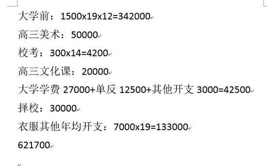 武汉工程科技学院学生计算出的从出生到现在已经花费父母多少钱的消息刷爆了该校2015级学生的朋友圈。