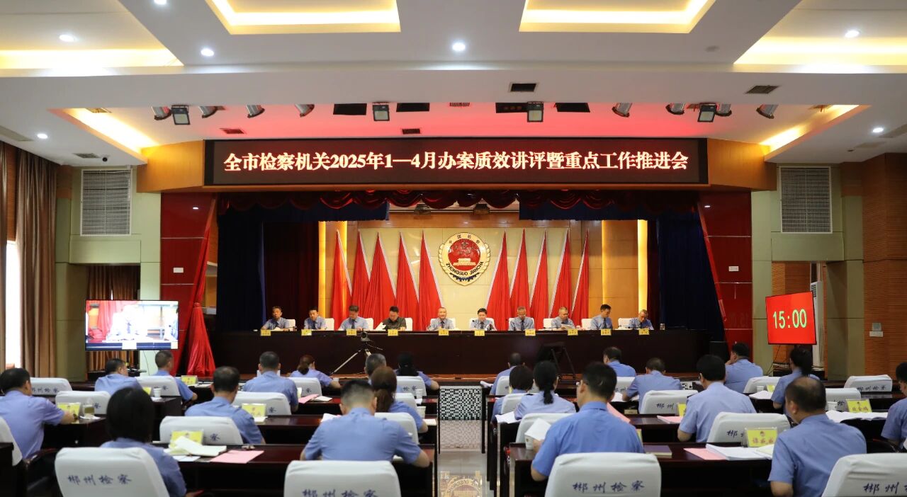 华声在线5月22日讯(通讯员 周亚莉 全昭蓉)5月20日,郴州市检察机关2025年1-4月办案质效讲评暨重点工作推进会召开。市检察院党组书记、检察长肖功员主持会议并讲话。