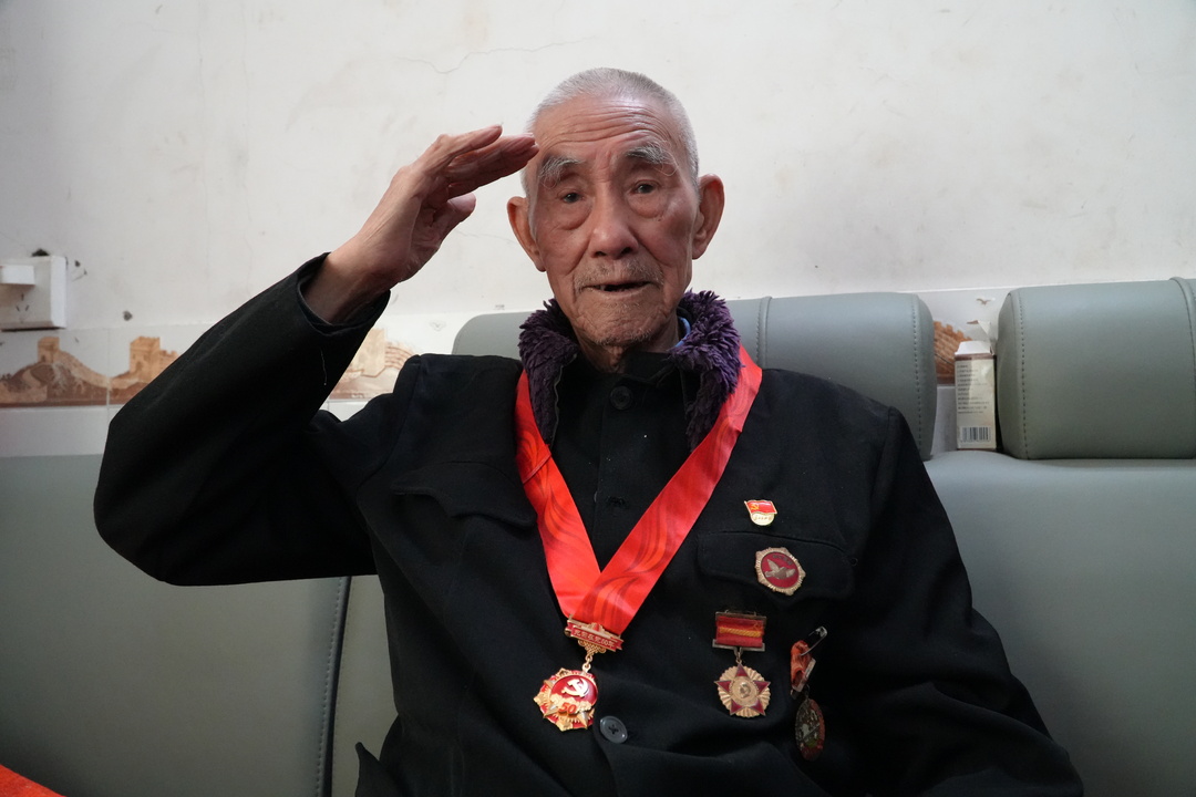 10月24日,在敖泉镇92岁老兵张克金家中,张爷爷身着整洁服装,腰杆挺得笔直,胸前的勋章在阳光下熠熠生辉。"笑一下,好!敬个军礼!一、二、三,好!"随着摄影师的指导,爷爷行了一个标准的军礼。这个动作,瞬间将所有人的思绪拉回到了那个炮火连天的岁月。