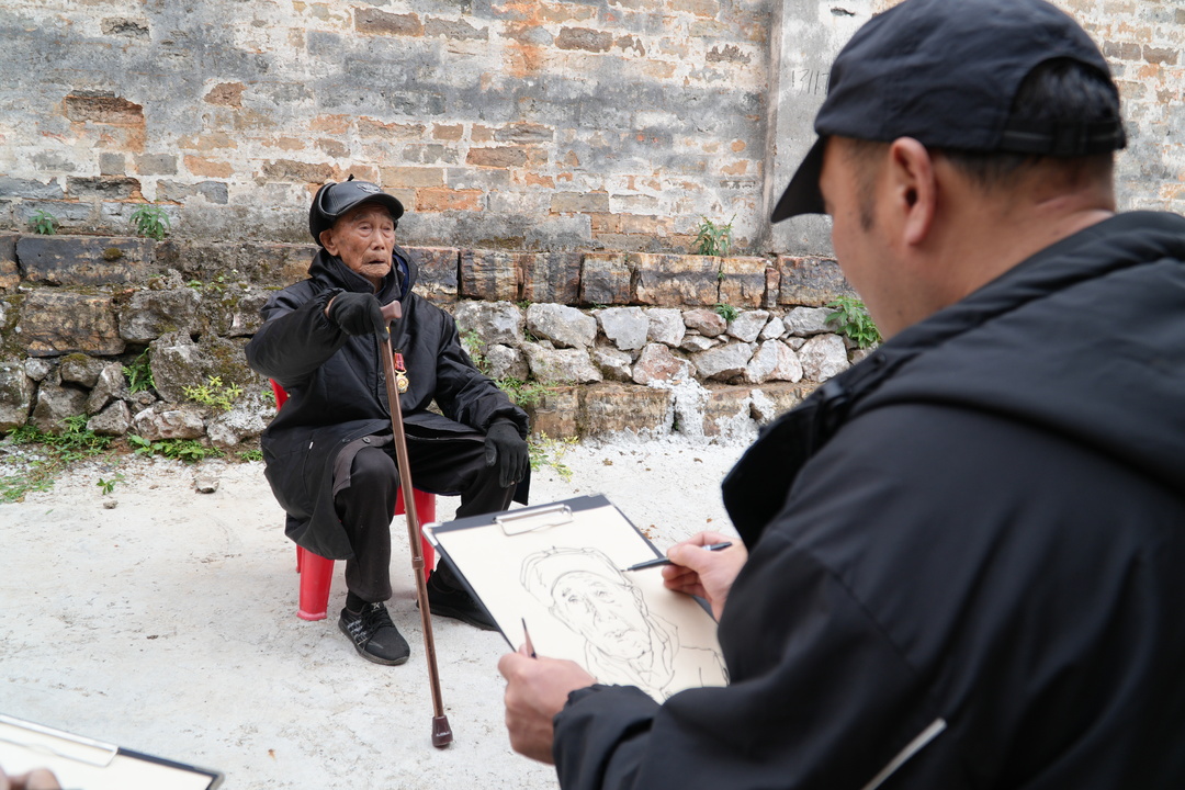 在这场特殊的重阳节活动中,大家用各自的方式记录着这些珍贵记忆。桂阳县美术家协会会长陈斌在绘制老兵肖像时格外用心:"在重阳节这个特殊的日子里,我们用画笔不仅是在记录英雄的容颜,更是在传递尊老敬贤的中华传统美德,让年轻人从老英雄身上汲取力量,学习他们为了国家和民族,敢于牺牲、勇于奉献的崇高精神。"