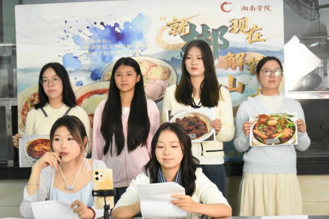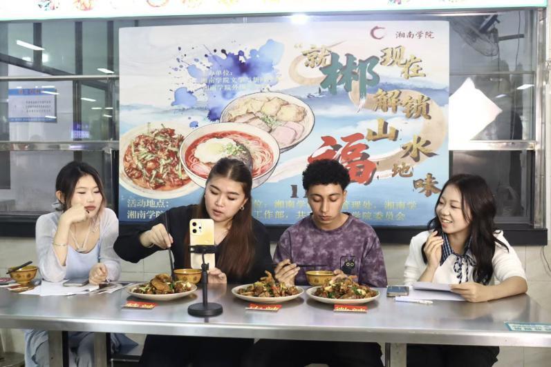华声在线11月10日讯(通讯员 胡可欣 林芹烨)11月7日,湘南学院文学与新闻学院、外国语学院联合后期管理处、学生工作部、共青团湘南学院委员会于三食堂开展就“‘郴’现在,解锁山水福地味”直播活动。湘南学院在校大学生携手留学生、线上线下观众同步参与,以美食为媒,体验郴州“山水福地”的本土文化密码。
