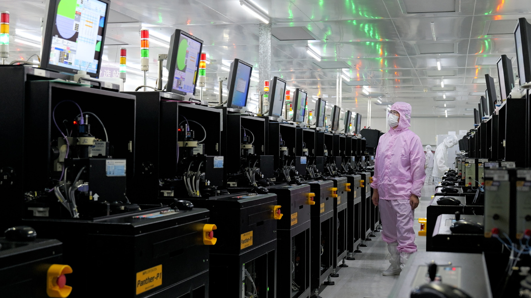 外延生长、金属镀膜、光刻刻蚀、点测分选……在华磊光电无尘车间,各条芯片生产线高速运转,穿梭其间的技术人员身着无尘衣、口罩、鞋套,手戴乳胶手套,仔细观察着仪器内芯片。“芯片是光源制造的‘魂’,决定着产品性能的上限。”华磊光电总工程师季辉说。