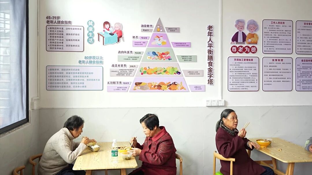 临近正午,老人们便陆续来到食堂,熟悉地打招呼、找座位。负责人谢民武一边热情地招呼,一边在登记表上认真记下每位用餐老人的姓名。在这里一顿营养午餐仅需3元,实惠又暖心。说话间,热气腾腾的饭菜已准备就绪,老人们围坐桌前,边吃边聊,饭菜的香气里满是幸福的滋味。