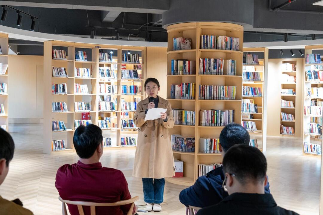 现场书香氤氲、暖意融融,三名征文比赛获奖代表依次登台发言,结合自身工作实践,分享了在园区这个大家庭中奋斗、成长的故事。其中,曾炎结合一线招商工作经历,强调团队协作、攻坚克难的重要性,发扬亮剑精神,倡导以家人之情凝聚合力、打破部门壁垒、统一目标行动。