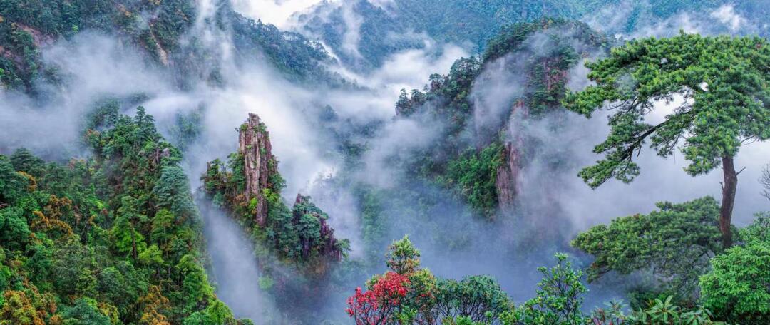 韩国旅行团打卡莽山旅游区五指峰景区。