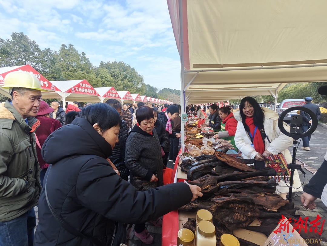 “波水的糍粑、仁峰的山茶油、滁口的皇帝柑、回龙山的腊肉......一次购齐,都是正宗本地货,价格还实惠。”回资兴过年的市民李先生听说白薇广场有本地年货节,他第一时间就来选购,为春节走亲戚做准备,同时也为资兴乡村振兴点赞。