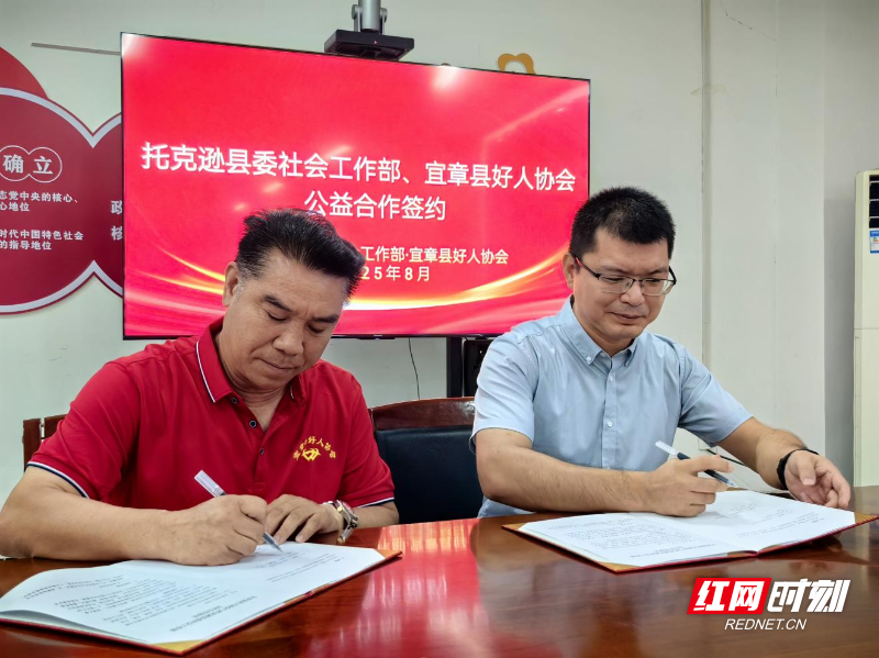 宜章县好人协会与托克逊县委社会工作部签订《公益友好合作协议》。