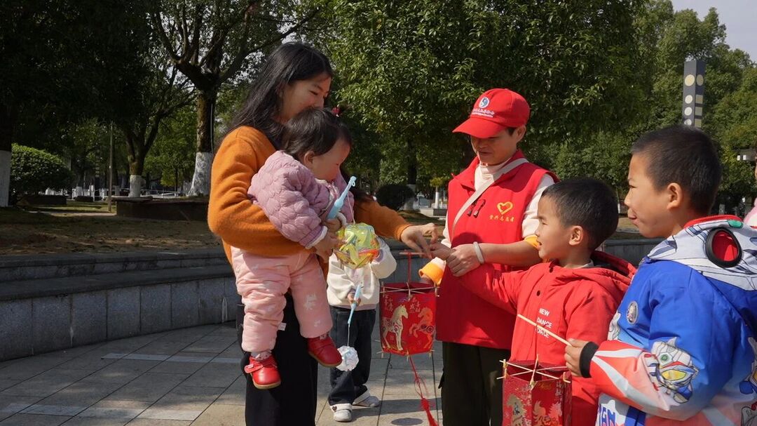 手工课结束后,孩子们化身新春送福“小使者”,在志愿者的陪伴下走上街头,将亲手制作的马元素剪纸作品、竹编贴画与红包灯笼,送到过往市民手中,街头巷尾洋溢着浓浓的年味与温情。