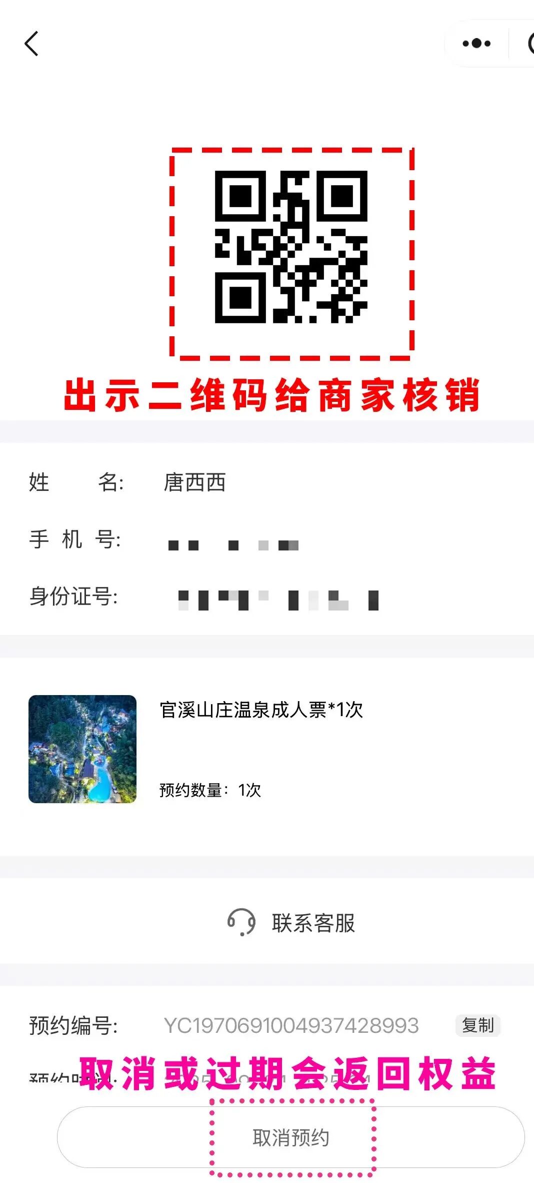 核销:向商家出示订单核销二维码,经工作人员扫码验证后,即可享受温暖的温泉服务。