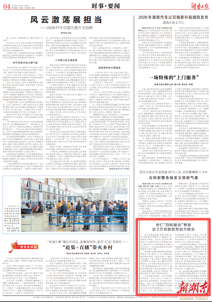 在拓宽就业渠道上,安仁县坚持内外结合。对外,在北上广深等七大城市设立劳务联络站,有序组织劳务输出。对内,大力实施就业帮扶车间“提质扩容”工程,车间数量从60家增至118家,累计吸纳就业1.3万人次,并结合“一村一品”发展特色就业载体,促进群众“家门口”就业。对于难以外出就业的群体,年均开发公益性岗位800余个,五年累计发放相关补贴3061.5万元,兜牢民生底线。