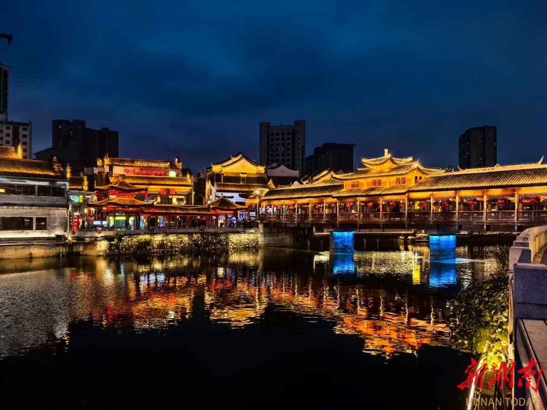入夜,裕后街的古今交响愈发动人。沿江建筑倒映水面,灯笼和光影相互交织,登上南塔远眺,灯火如星河倾泻,一时颇有“夜半钟声到客船”的意境。苏仙区南塔街道负责人表示,将加快推进八一路步行街、九街十八巷建设,努力提升裕后街业态和街区矩阵,让千年文脉焕发全新神采。