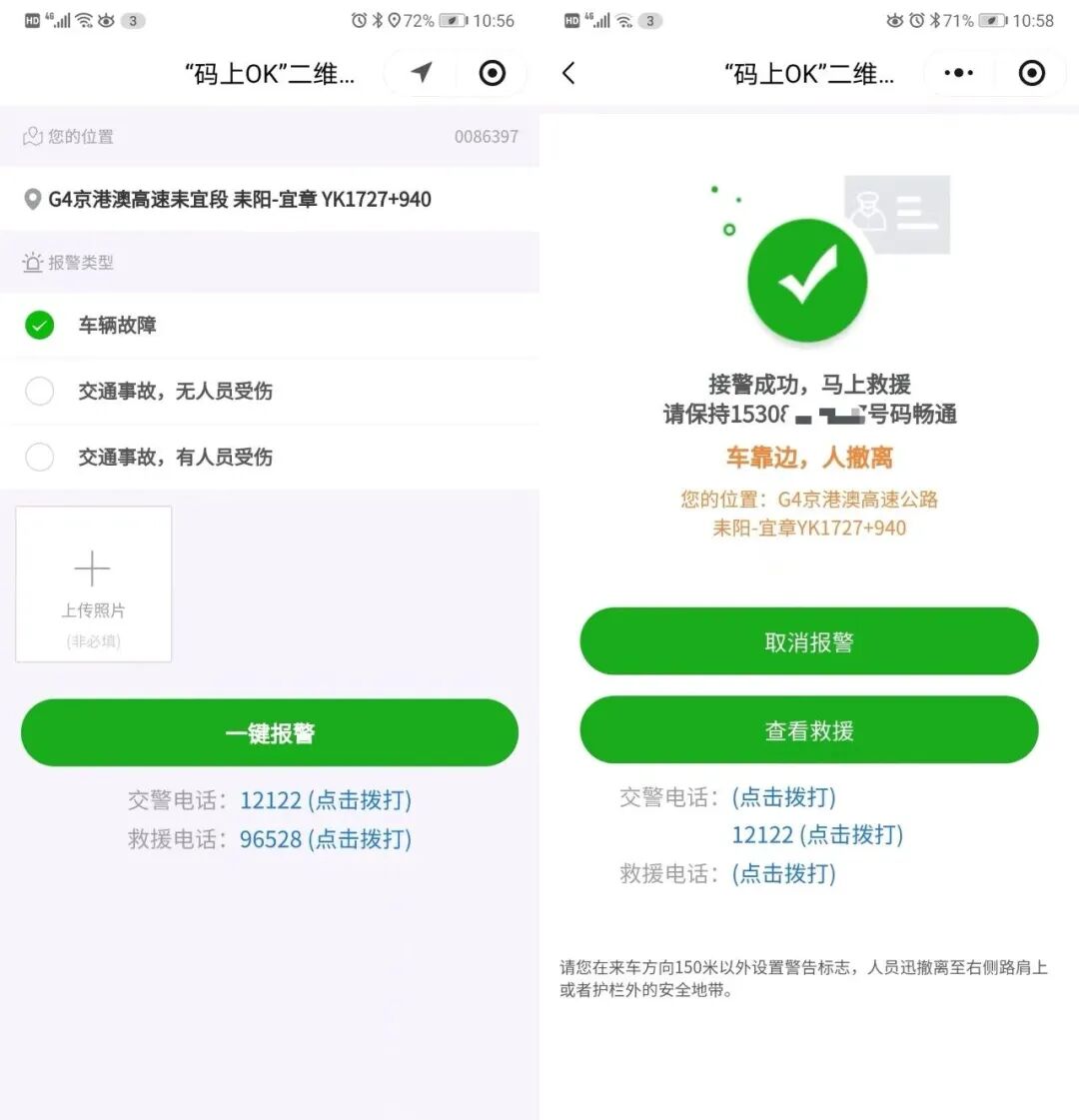 随着G4耒宜改扩建工程推进,“码上OK”二维码互联网报警救援平台正式上线,这一痛点被彻底打破,且加装了反光膜的二维码在夜间依然清晰可见。
